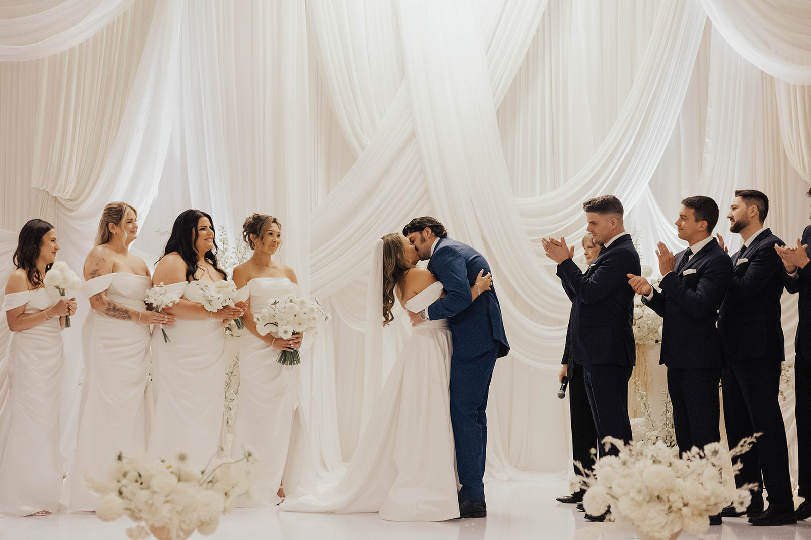 And because Kamille’s sense of style is impeccable, she designed her own dress which was a total moment in itself—elevated, intentional, and effortlessly chic. Beauty for the bride and groom was done by Styled by Alison Sun, creating a polished look that still felt like them.