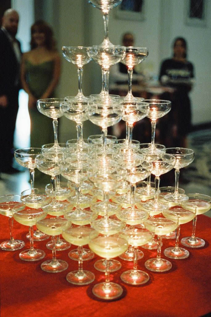 - A champagne tower with Nora & Will kicking off the celebration with a classic cork popping ceremony!