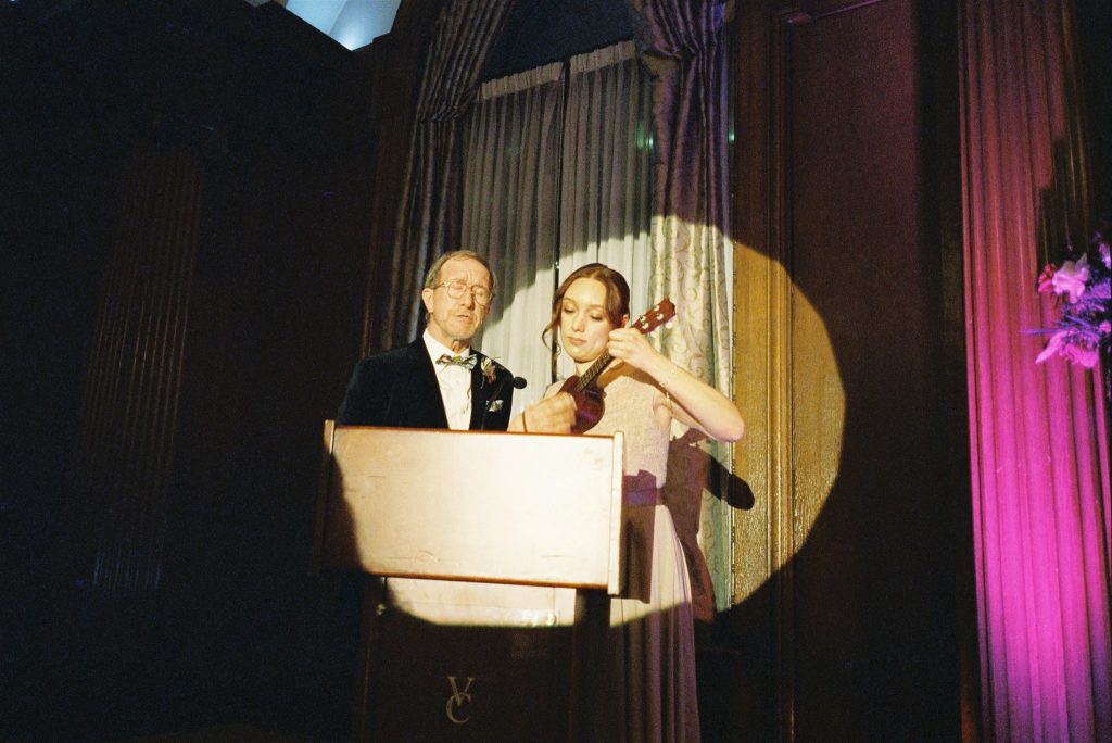 Father of the Groom and the evening’s Emcee Ian Michell welcomed everyone, the bar opened (strategically timed so it didn’t distract from the welcome), and Nora and Will were introduced into the Ballroom with a special entrance song queued as performed by Ian and the Groom’s sister on Ukele.