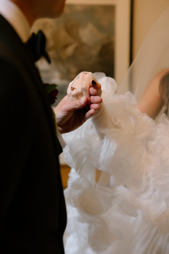The engagement ring belonged to our bride Kylee and came from The Gold Room Jewellers in South Surrey, BC. Her wedding band was also from The Gold Room, sourced from their estate and vintage collection. Fraser’s band carried even more personal significance, as it was his maternal grandfather’s ring. It is these details that bring soul to a story and remind us that the most memorable beauty is rooted in meaning.